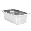 Namizne posode so izdelane iz močnega nerjavečega jekla, imajo trdno konstrukcijo in so preproste za čiščenje. Trpežen material zagotavlja zaščito pred praskami in preprosto vzdrževanje. Posoda za hrano se ponaša s standardnimi gastronomskimi dimenzijami in zato omogoča univerzalno uporabo v različnih kombinacijah. Prav zato se bo popolnoma podala v vse vaše profesionalne kuhinjske omarice in k drugi dodatni opremi, kot so vodne kopeli za gretje hrane, termo posode in solatni bari. Posode se lahko zložijo ena na drugo in tako prihranijo veliko prostora, zato so zelo praktične in idealne za uporabo v restavracijah, hotelih, na zabavah in doma.
