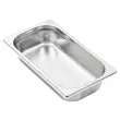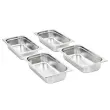 Namizne posode so izdelane iz močnega nerjavečega jekla, imajo trdno konstrukcijo in so preproste za čiščenje. Trpežen material zagotavlja zaščito pred praskami in preprosto vzdrževanje. Posoda za hrano se ponaša s standardnimi gastronomskimi dimenzijami in zato omogoča univerzalno uporabo v različnih kombinacijah. Prav zato se bo popolnoma podala v vse vaše profesionalne kuhinjske omarice in k drugi dodatni opremi, kot so vodne kopeli za gretje hrane, termo posode in solatni bari. Posode se lahko zložijo ena na drugo in tako prihranijo veliko prostora, zato so zelo praktične in idealne za uporabo v restavracijah, hotelih, na zabavah in doma.