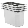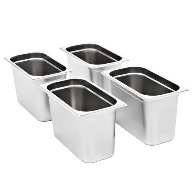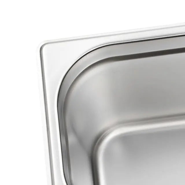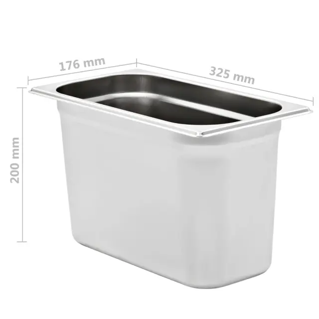 Namizne posode so izdelane iz močnega nerjavečega jekla, imajo trdno konstrukcijo in so preproste za čiščenje. Trpežen material zagotavlja zaščito pred praskami in preprosto vzdrževanje. Posoda za hrano se ponaša s standardnimi gastronomskimi dimenzijami in zato omogoča univerzalno uporabo v različnih kombinacijah. Prav zato se bo popolnoma podala v vse vaše profesionalne kuhinjske omarice in k drugi dodatni opremi, kot so vodne kopeli za gretje hrane, termo posode in solatni bari. Posode se lahko zložijo ena na drugo in tako prihranijo veliko prostora, zato so zelo praktične in idealne za uporabo v restavracijah, hotelih, na zabavah in doma.