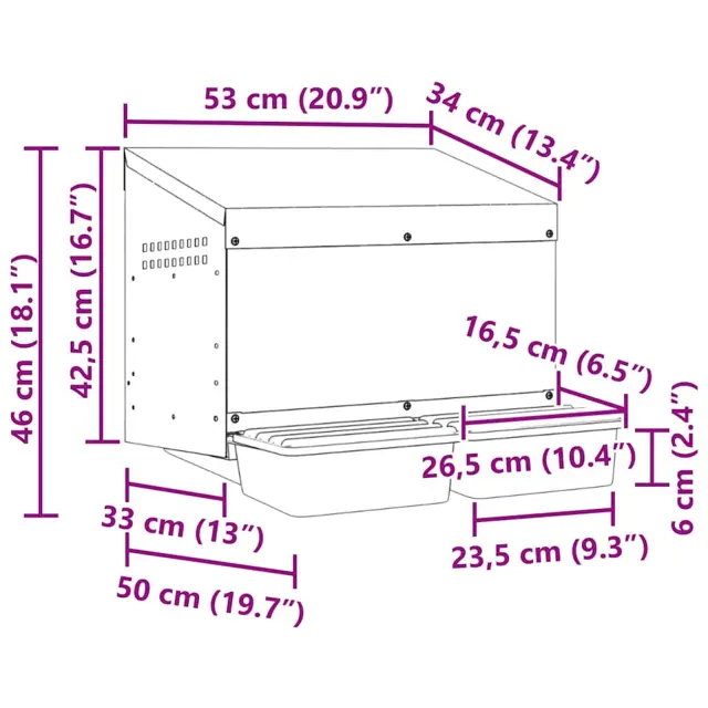 • Robusten in vzdržljiv material: Ta gnezdilnica je izdelana iz pocinkanega jekla in trpežne polipropilenske plastike ter je izdelana za dolgo življenjsko dobo, saj ponuja dolgotrajno delovanje in zaščito vaših kokoši pred ostrimi zunanjimi razmerami.