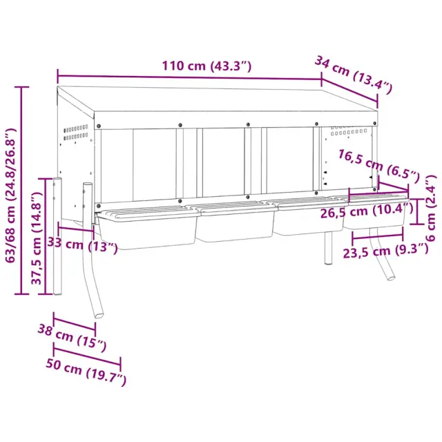 • Robusten in vzdržljiv material: Ta gnezdilnica je izdelana iz pocinkanega jekla in trpežne polipropilenske plastike ter je izdelana za dolgo življenjsko dobo, saj ponuja dolgotrajno delovanje in zaščito vaših kokoši pred ostrimi zunanjimi razmerami.