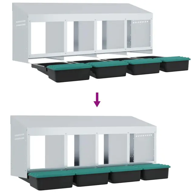 • Robusten in vzdržljiv material: Izdelana iz pocinkanega jekla in trpežne polipropilenske plastike, je ta gnezdilnica zgrajena za dolgo življenjsko dobo, saj ponuja dolgotrajno delovanje in zaščito vaših kokoši pred težkimi zunanjimi razmerami.