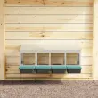 • Premišljeno prezračevanje: Gnezdilnica je zasnovana z zračnimi odprtinami in odprto sprednjo stranjo, ki zagotavljajo optimalen pretok zraka, ohranjajo suho, brez vonja in udobno okolje za vaše kokoši, hkrati pa preprečujejo kopičenje vlage in vonjav.