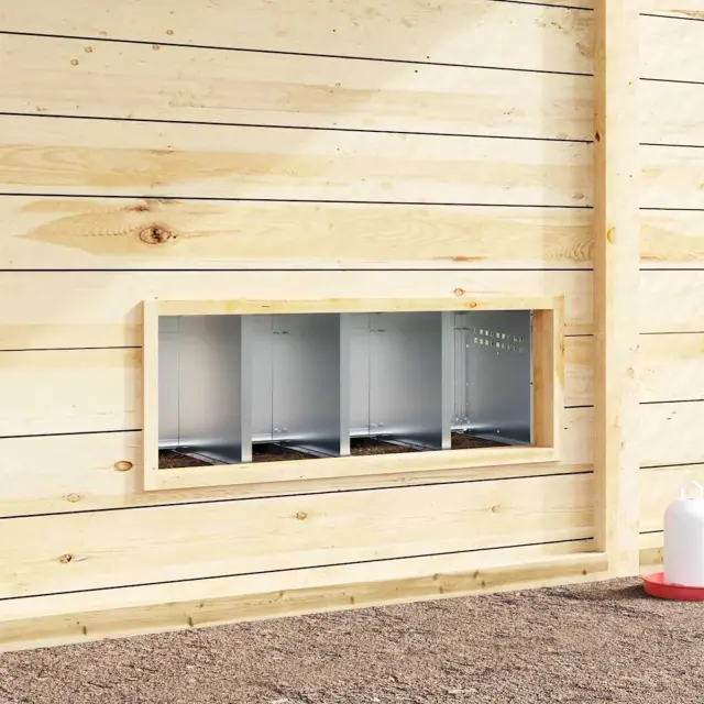 • Preprosta namestitev: Gnezdilnica je zasnovana z odprto sprednjo stranjo, ki se brezhibno integrira v stenske izreze, zato kokoši lahko enostavno dostopajo, hkrati pa ohranja urejeno in prostorsko varčno postavitev. Idealen za lesene stene s predhodno pripravljenimi izrezi, zagotavlja hitro in varno namestitev z minimalnim naporom.