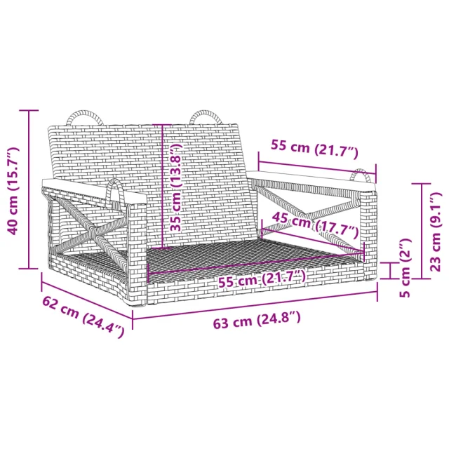 vidaXL Gugalna klop bež 63x62x40 cm poli ratan