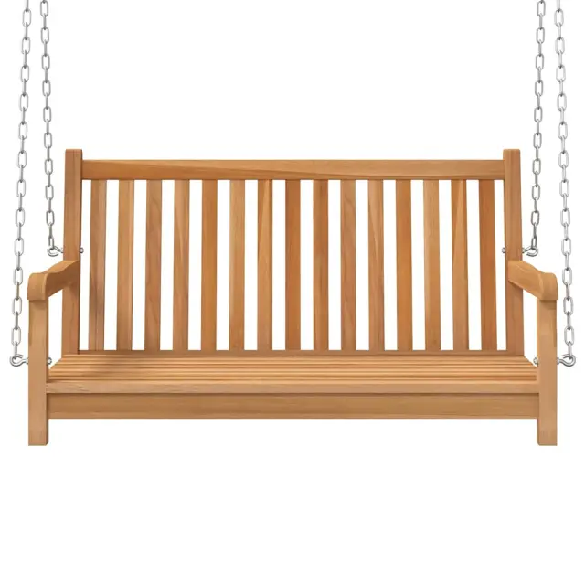 Ta kos pohištva iz izjemno trpežne tikovine je bil izpostavljen vremenskim vplivom, sušen v peči in nato fino brušen za pridobivanje gladkega izgleda. Tikovina je znana po svoji izjemni moči in odpornosti na vremenske vplive, zato je izmed vseh vrst lesa najbolj primerna za vrtno pohištvo. Tikovina je popolna izbira, če želite kupiti dolgotrajen kos vrtnega pohištva. Uživajte v prijetnem vetriču med guganjem na tej klopi.