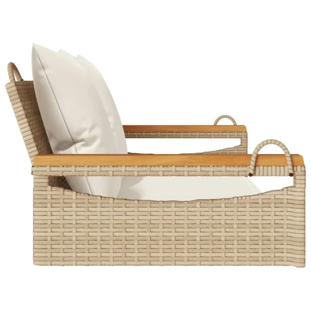 vidaXL Gugalna klop z blazinami bež 109x62x40 cm poli ratan