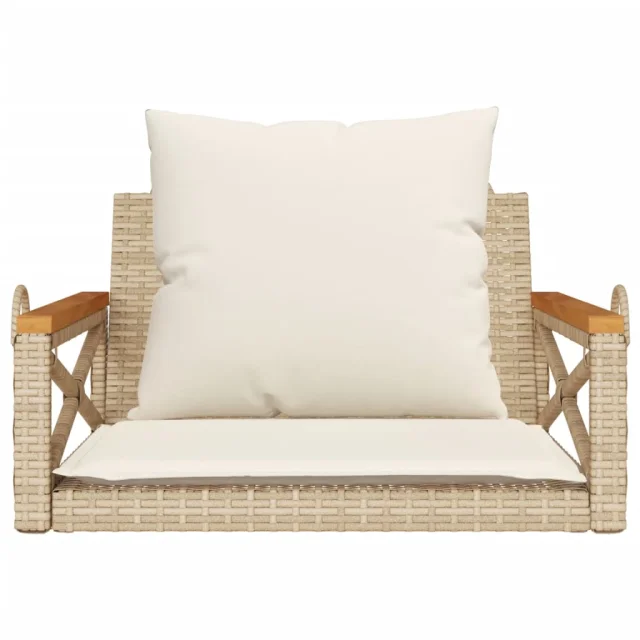 vidaXL Gugalna klop z blazinami bež 63x62x40 cm poli ratan