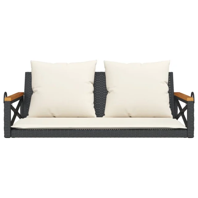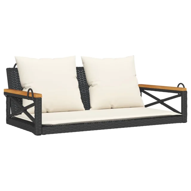 vidaXL Gugalna klop z blazinami črna 109x62x40 cm poli ratan