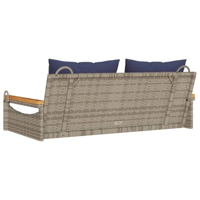 vidaXL Gugalna klop z blazinami siva 109x62x40 cm poli ratan