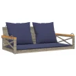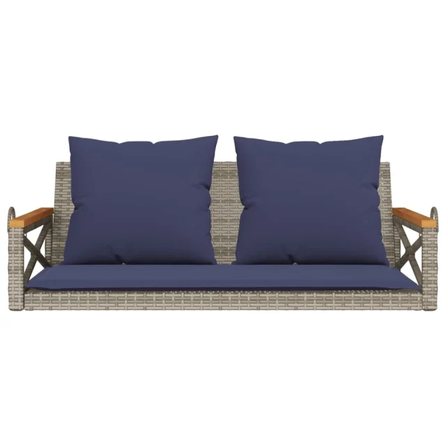 vidaXL Gugalna klop z blazinami siva 109x62x40 cm poli ratan