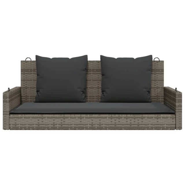vidaXL Gugalna klop z blazinami siva 119x56x48 cm poli ratan