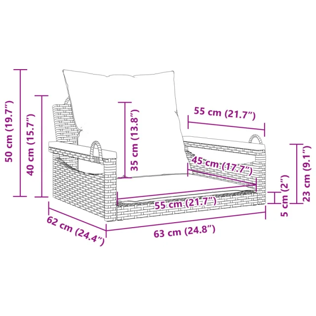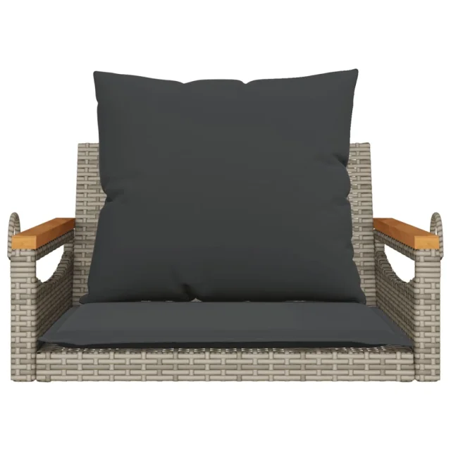 vidaXL Gugalna klop z blazinami siva 63x62x40 cm poli ratan