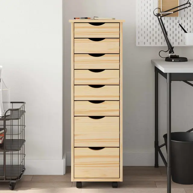 Ta moderni premični omarica s predali ponuja minimalističen pristop k shranjevanju in se brez težav zlije v vsako sodobno okolje, naj gre za dom ali pisarno. Ima poenostavljeno obliko s čistimi linijami in je lahka, kar jo dela elegantno in funkcionalno. Idealna je za prostore, ki stremijo k urejenosti, saj nudi elegantno rešitev za shranjevanje osebnih stvari, dokumentov in še več ter vzpostavlja ravnovesje med obliko in funkcijo.