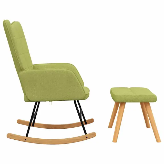 Stol za sproščanje s šivi v obliki kvadratov je estetsko dodelan. Zaradi penaste podloge, ki je oblečena v mehko blago, lahko uživate v optimalnem udobju med sedenjem. Fotelj z dolgimi gugalnimi vodili se ne bo zlahka prevrnil. Stol s stolčkom je podprt z jeklenim okvirjem in nogami, zato je stabilen in vzdržljiv.