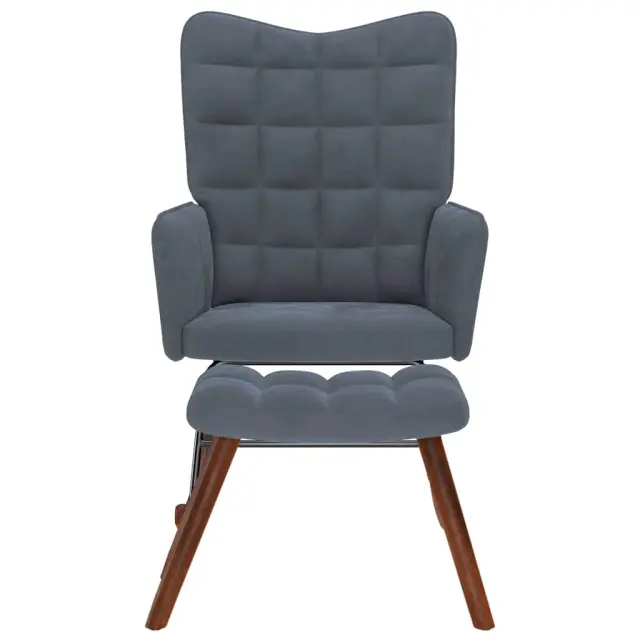 Ali iščete stol za popoln počitek po napornem dnevu? Ta udoben stol za sproščanje s stolčkom je popolna izbira! Mehak in udoben material: Vlažna tkanina iz žameta ima mehko in gladko površino, ki zagotavlja prijeten občutek ter vam zagotavlja toploto in popolno udobje.Trpežen in stabilen okvir: Vezan les in kovinski okvir fotelja zagotavljata trdnost in stabilnost.Udobno sedenje: Fotelj je opremljen z debelo oblazinjenim sedežem in naslonom ter nasloni za roke, ki zagotavljajo veliko udobje.Lesene noge: Lesene noge zagotavljajo odlično stabilnost, hkrati pa dajejo stolu naraven in prijeten videz.Vsestranski podstavek za noge: Stolček je vsestransko uporaben, saj služi kot udobna opora za noge, ko se naslonite na stol, ali kot dodaten sedež.Široka uporaba: Ta lounge stol je vsestranski in eleganten dodatek k vsakemu domu ali pisarniškemu prostoru za prosti čas. Ne glede na to, ali ga postavite v bližino kavča v dnevni sobi ali ustvarite prijeten kotiček v spalnici ali kabinetu, bo izboljšal estetiko vašega bivalnega prostora.Barva: Temno sivaMaterial: Material: žamet (100 % poliester), masivni les, vezan les, kovinaMaterial polnila: PenaDimenzije stola: 61 x 78 x 98 cm (Š x G x V)Dimenzije stolčka: 47 x 32 x 38 cm (Š x G x V)Širina sedeža: 47 cmGlobina sedeža: 53,5 cmVišina sedeža, merjena od tal: 47,5 cmVišina naslonjal za roke, merjena od tal: 60,5 cmPuhast in debelPotrebno sestavljanje: DaPaket vsebuje:1 x Stol za sproščanje1 x Stolček 4016844