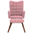 Ali iščete stol za popoln počitek po napornem dnevu? Ta udoben stol za sproščanje s stolčkom je popolna izbira! Mehak in udoben material: Vlažna tkanina iz žameta ima mehko in gladko površino, ki zagotavlja prijeten občutek ter vam zagotavlja toploto in popolno udobje.Trpežen in stabilen okvir: Vezan les in kovinski okvir fotelja zagotavljata trdnost in stabilnost.Udobno sedenje: Fotelj je opremljen z debelo oblazinjenim sedežem in naslonom ter nasloni za roke, ki zagotavljajo veliko udobje.Lesene noge: Lesene noge zagotavljajo odlično stabilnost, hkrati pa dajejo stolu naraven in prijeten videz.Vsestranski podstavek za noge: Stolček je vsestransko uporaben, saj služi kot udobna opora za noge, ko se naslonite na stol, ali kot dodaten sedež.Široka uporaba: Ta lounge stol je vsestranski in eleganten dodatek k vsakemu domu ali pisarniškemu prostoru za prosti čas. Ne glede na to, ali ga postavite v bližino kavča v dnevni sobi ali ustvarite prijeten kotiček v spalnici ali kabinetu, bo izboljšal estetiko vašega bivalnega prostora.Barva: RozaMaterial: Material: žamet (100 % poliester), masivni les, vezan les, kovinaMaterial polnila: PenaDimenzije stola: 61 x 78 x 98 cm (Š x G x V)Dimenzije stolčka: 47 x 32 x 38 cm (Š x G x V)Širina sedeža: 47 cmGlobina sedeža: 53,5 cmVišina sedeža, merjena od tal: 47,5 cmVišina naslonjal za roke, merjena od tal: 60,5 cmPuhast in debelPotrebno sestavljanje: DaPaket vsebuje:1 x Stol za sproščanje1 x Stolček 4016847
