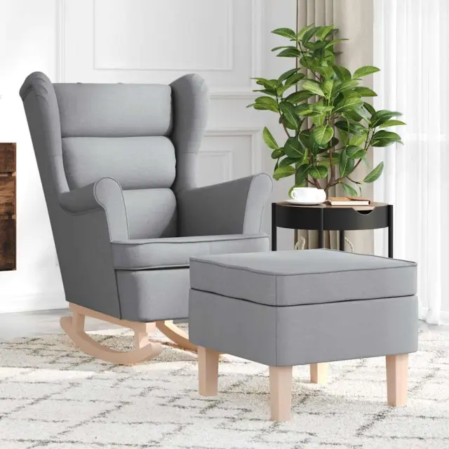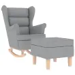 vidaXL Gugalni stol s stolčkom za noge svetlo sivo blago