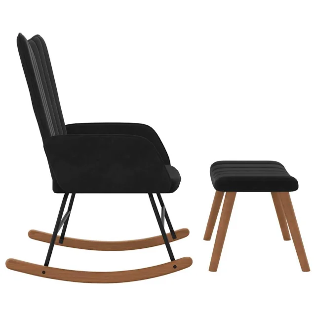vidaXL Gugalni stol s stolčkom črn žamet