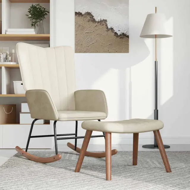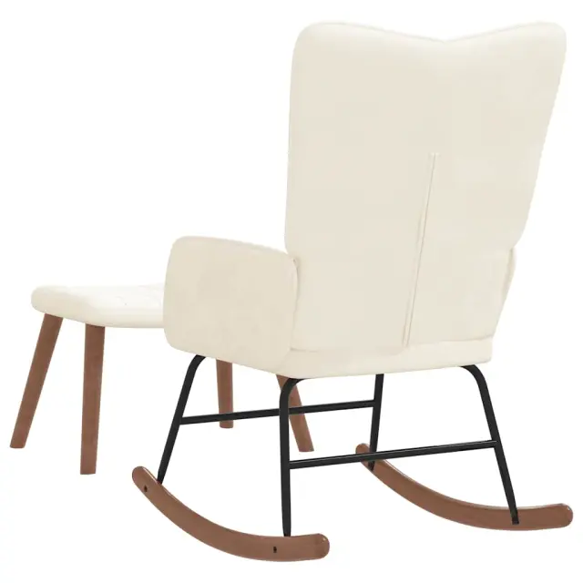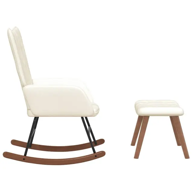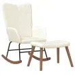 vidaXL Gugalni stol s stolčkom kremno bel žamet