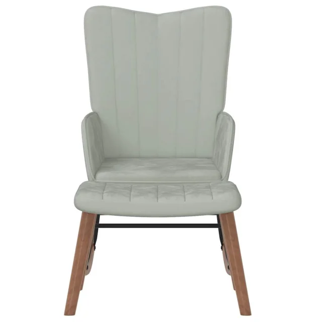 Ta naslanjač s črtami na naslonjalu je lep na pogled. Ker je podložen s peno in oblečen v mehak žamet, lahko uživate v optimalnem udobju med sedenjem. Dolgi gugalni deli zagotavljajo, da se stol ne bo zlahka prevrnil. Stol s stolčkom ima jeklen okvir in noge, zato je stabilen in vzdržljiv.