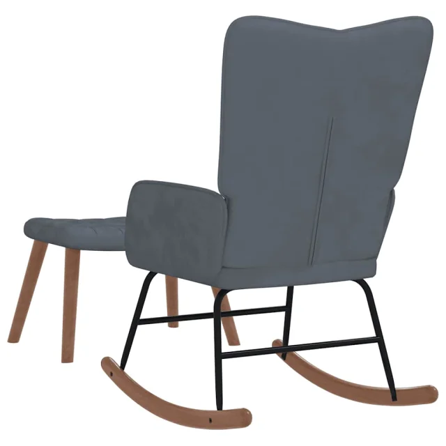 vidaXL Gugalni stol s stolčkom temno siv žamet