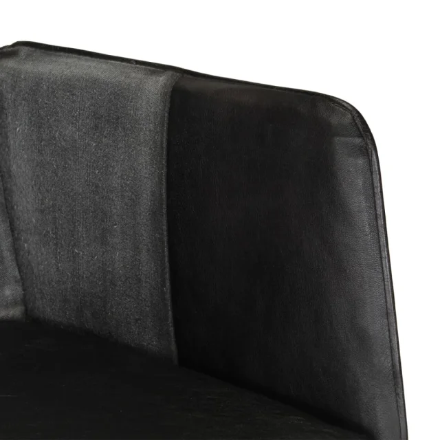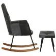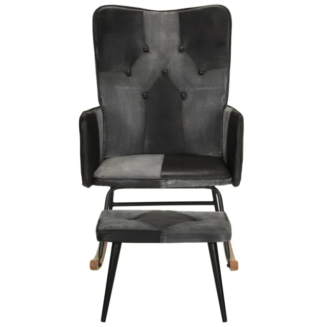 vidaXL Gugalni stol s stolčkom za noge črno pravo usnje in platno