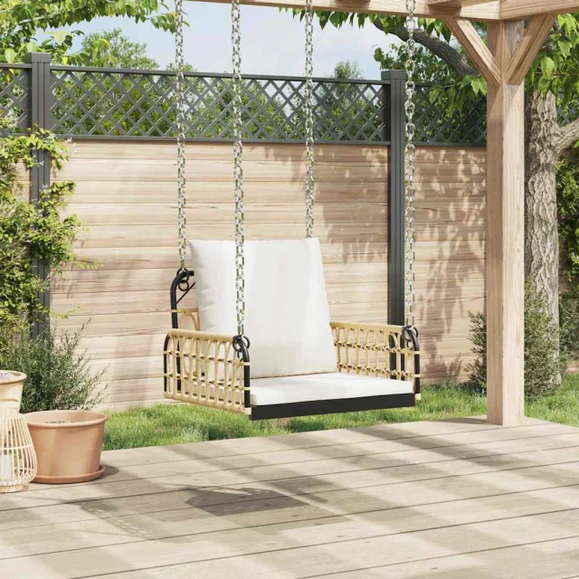 vidaXL Gugalni stol z blazinami 63x58x39 cm poli ratan in jeklo