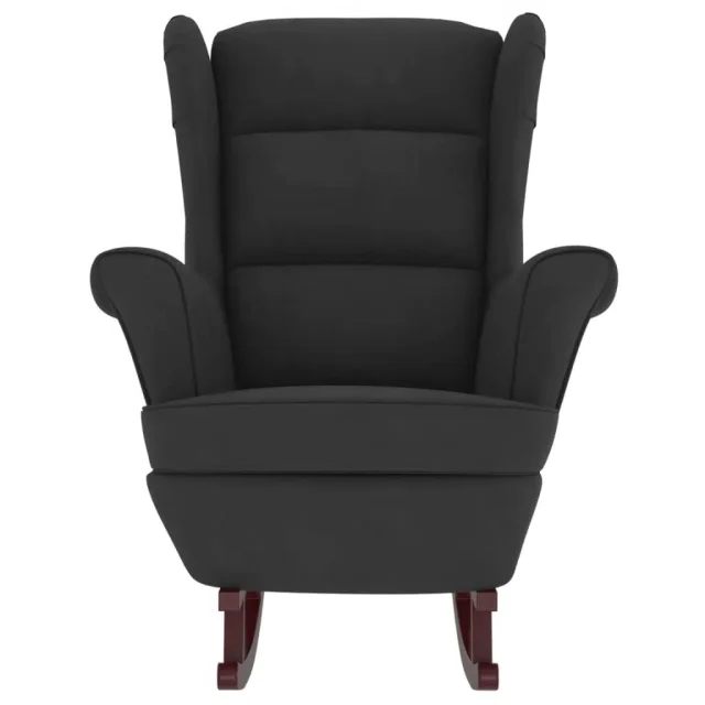 vidaXL Gugalni stol z lesenimi nogami in stolčkom črn žamet