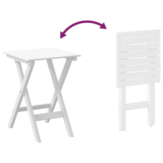 vidaXL Gugalni stol z zložljivo mizo 2 kosa bela trdna topolovina