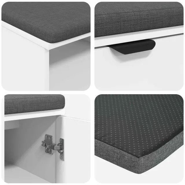 • Funkcionalna shramba: Prostorno notranje shranjevanje omogoča, da klop ne služi samo kot sedež, ampak tudi kot shramba. Police so uporabne za shranjevanje čevljev, klobukov ali torb, tako da imate prostoren in čist vhod.