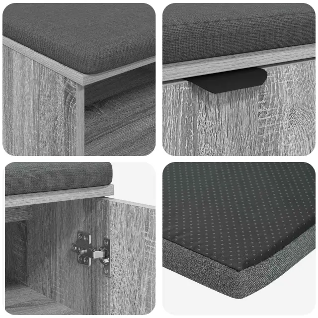 • Funkcionalna shramba: Prostorno notranje shranjevanje omogoča, da klop ne služi samo kot sedež, ampak tudi kot shramba. Police so uporabne za shranjevanje čevljev, klobukov ali torb, tako da imate prostoren in čist vhod.