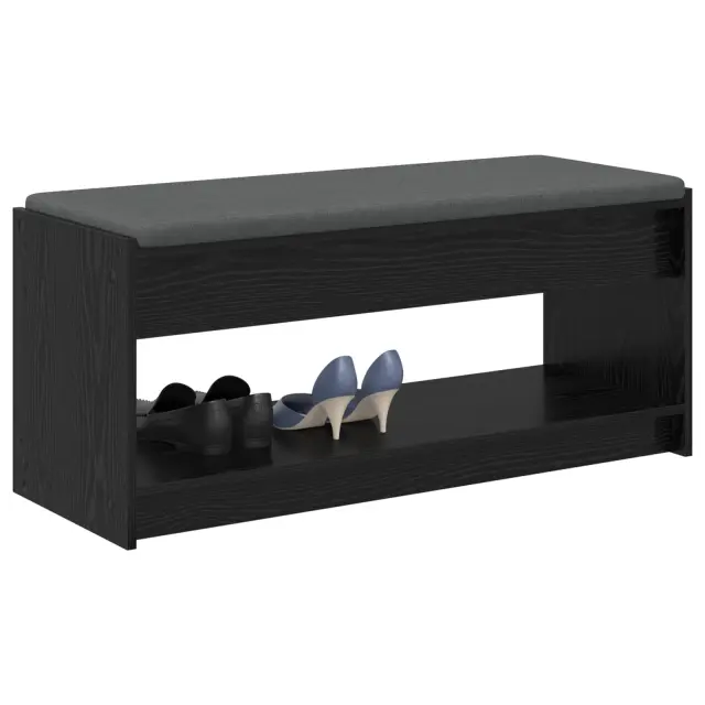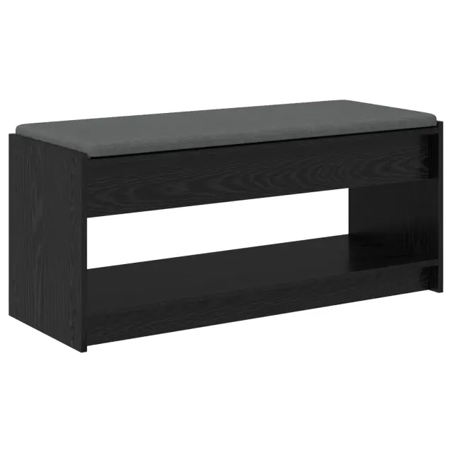 vidaXL Haldna klop z blazino s polico Črna Orehovina 103 x 38 x 45 cm