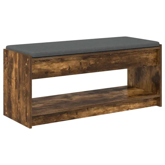 vidaXL Haldna klop z blazino s polico Dimljeni oreh 103 x 38 x 45 cm