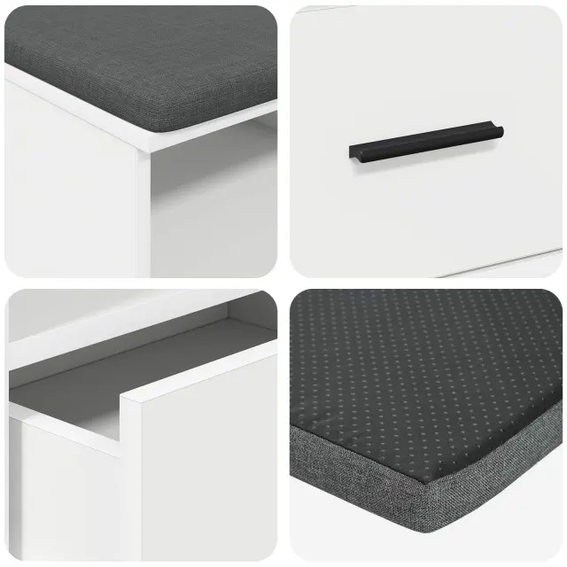 • Prijazno shranjevanje: Z obilnim vgrajenim prostorom je klop odlična za ohranjanje urejenosti v hodnikih. Uporabite jo za shranjevanje čevljev, vrečk ali drugih vsakodnevnih stvari, da bo prostor vedno videti urejen.