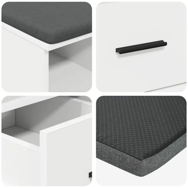 • Prijazno shranjevanje: Z obilnim vgrajenim prostorom je klop odlična za ohranjanje urejenosti v hodnikih. Uporabite jo za shranjevanje čevljev, vrečk ali drugih vsakodnevnih stvari, da bo prostor vedno videti urejen.