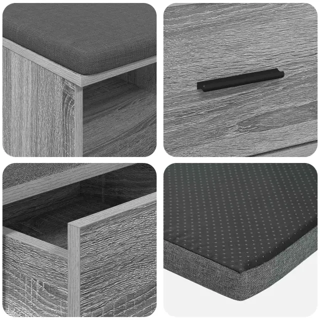 • Prijazno shranjevanje: Z obilnim vgrajenim prostorom je klop odlična za ohranjanje urejenosti v hodnikih. Uporabite jo za shranjevanje čevljev, vrečk ali drugih vsakodnevnih stvari, da bo prostor vedno videti urejen.