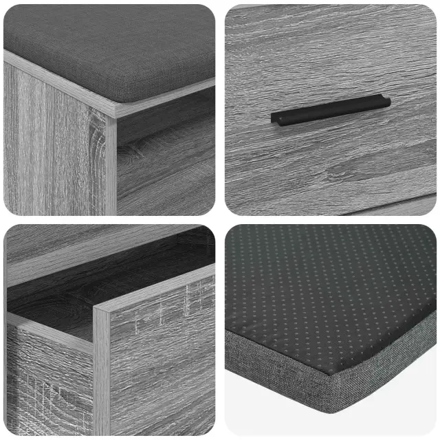 • Prijazno shranjevanje: Z obilnim vgrajenim prostorom je klop odlična za ohranjanje urejenosti v hodnikih. Uporabite jo za shranjevanje čevljev, vrečk ali drugih vsakodnevnih stvari, da bo prostor vedno videti urejen.