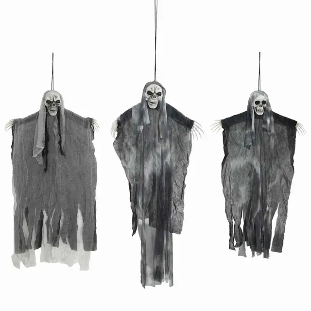vidaXL Halloween viseči duh 3 pcs Črna 66 x 110 cm Poliester