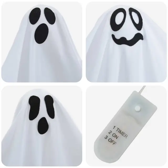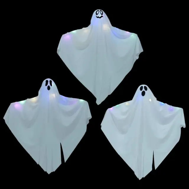 vidaXL Halloween viseči duh med 3 LED 3 pcs Bela Poliester