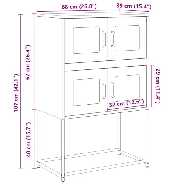 vidaXL Highboard Olive Green 68x39x107 cm Jeklo