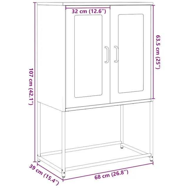 vidaXL Highboard Pink 68x39x107 cm Steel