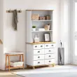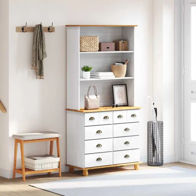 Ta hutch iz trdnega borovega lesa je prava zvezda vsake jedilnice. Njegov klasičen stil z ljubkimi detajli ga dela čudovit dodatek tvojmu domu. Ni le pohištvo; združuje eleganco in praktičnost, saj ponuja veliko prostora za shranjevanje in dviga vzdušje s svojim gladkim finišem.