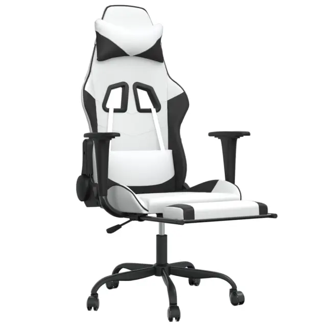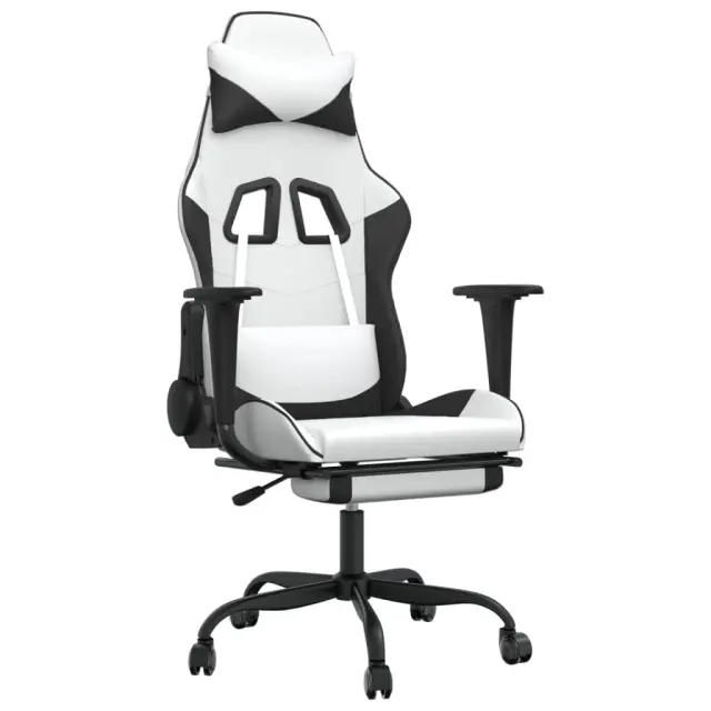 vidaXL Igralni stol z oporo za noge belo in črno umetno usnje