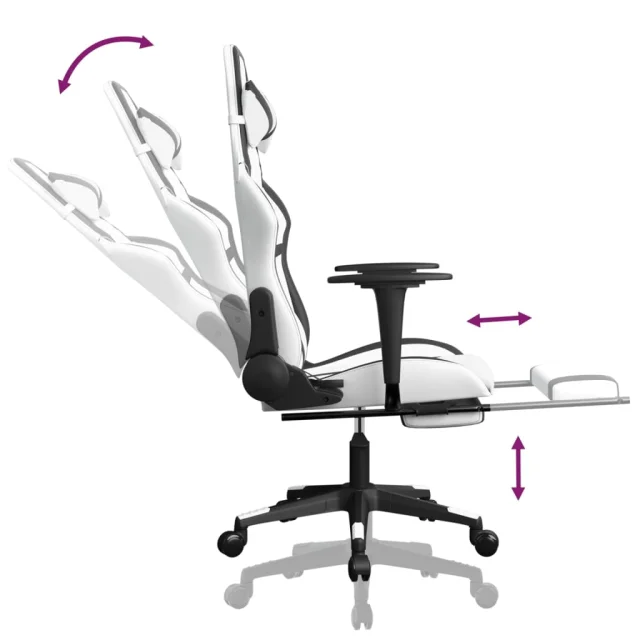 vidaXL Igralni stol z oporo za noge belo in črno umetno usnje