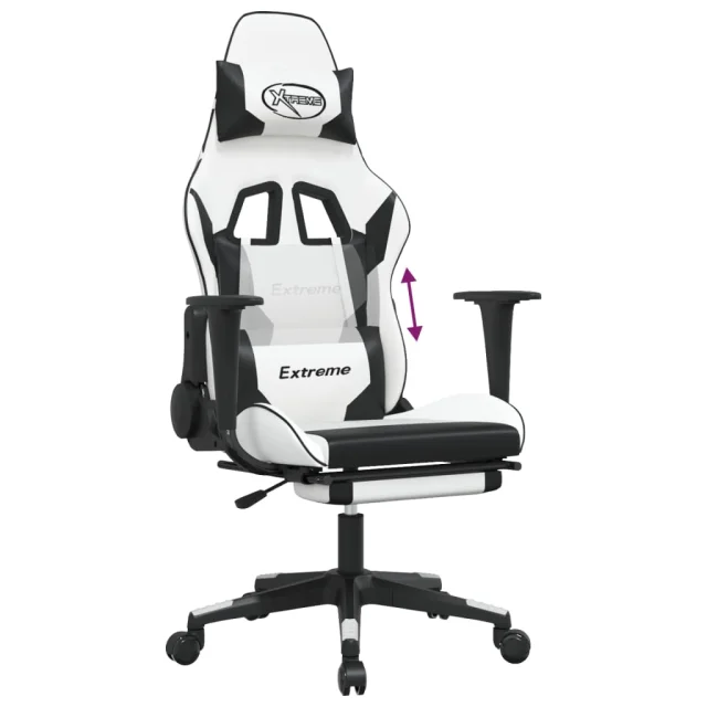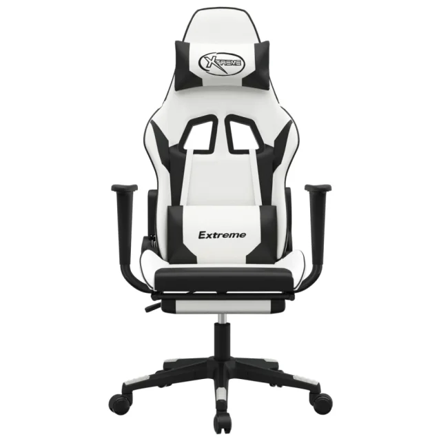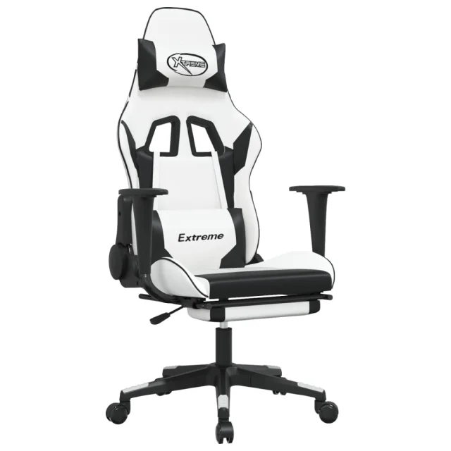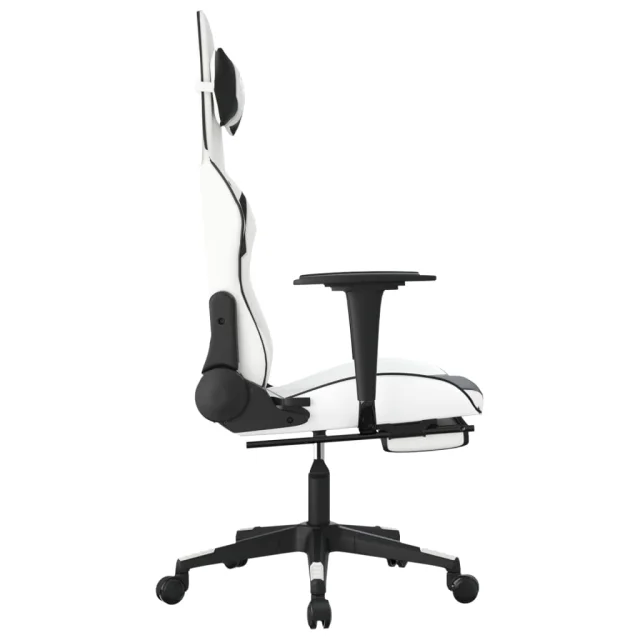 vidaXL Igralni stol z oporo za noge belo in črno umetno usnje