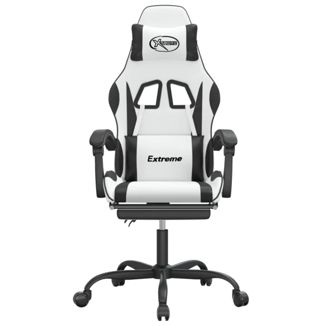 vidaXL Igralni stol z oporo za noge belo in črno umetno usnje