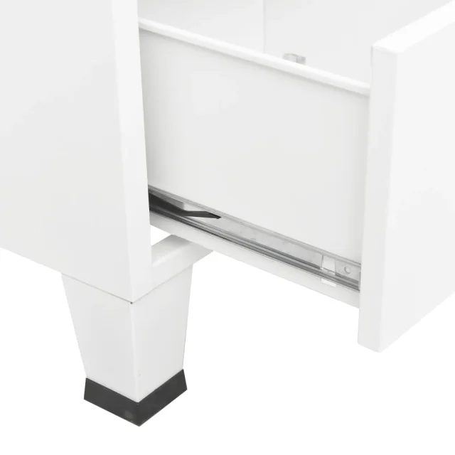 Omarica za shranjevanje je izdelana iz jekla, zato je vzdržljiva in preprosta za čiščenje. Omara ima 2 nastavljivi polici, ki omogočata urejeno sortiranje vaših oblačil v različne kategorije in 2 predala za shranjevanje vaših nogavic, spodnjega perila itd. Predali z 2 deloma krogličnih vodil zagotavljajo gladko odpiranje in zapiranje, tudi pod večjo obremenitvijo (predale se lahko popolnoma raztegne). Vsaka vrata imajo držalo za kartico z imenom in prezračevalne odprtine, kar prispeva k industrijskemu izgledu.
