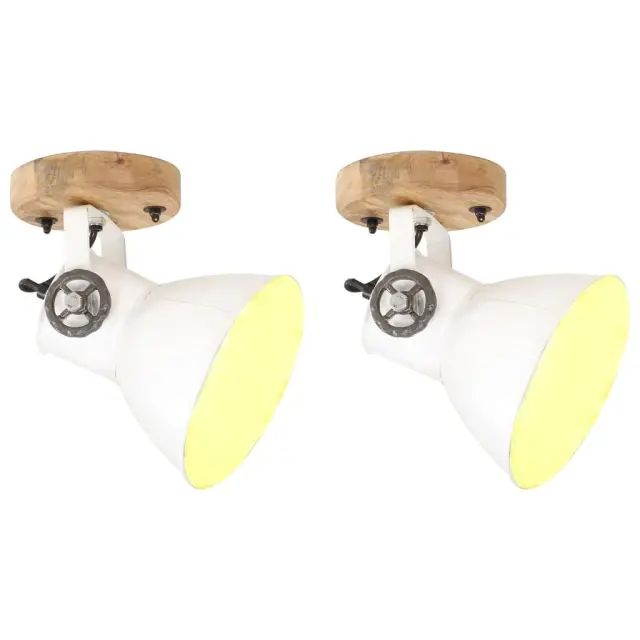 Svetilki imata železen senčnik z belim zaključkom in trden mangov les s čudovitim rjavim premazom, ki je bil izpostavljen vremenskim vplivom, zato se bosta popolnoma podali v podeželske ali industrijske notranje prostore. Stropni svetilki imata E27 navojno grlo za žarnico z največ 25 W. Izberete in namestite lahko žarnice E27 v različnih barvah ter tako ustvarite sproščeno in spokojno vzdušje. To svetilko lahko namestite tudi na strop.
