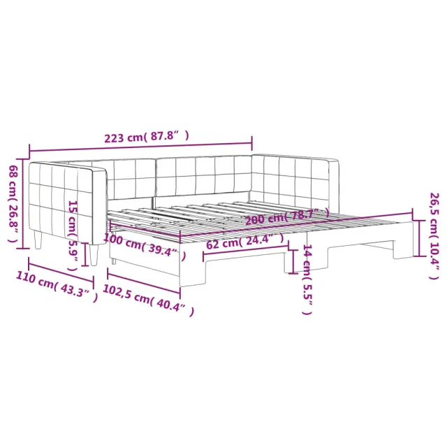 vidaXL Izvlečna dnevna postelja črna 100x200 cm žamet